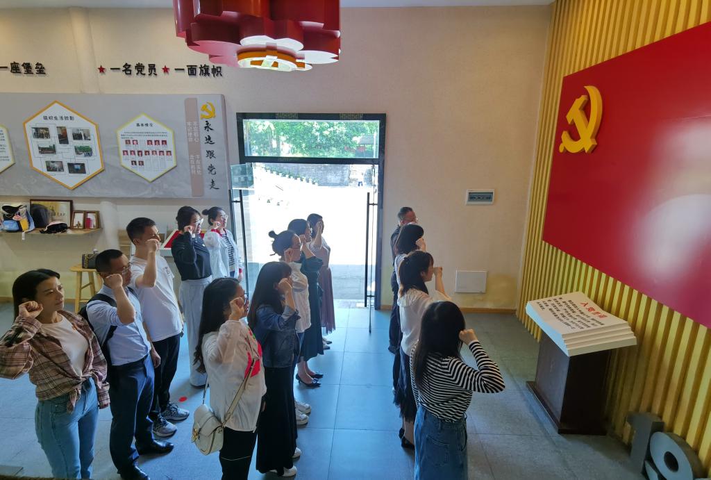 大家先后参观了郭沫若纪念馆,书法作品和故居老宅。在纪念馆内,通过“君自沫水来”、“国之栋梁柱”、“史学开鸿篇”、“文艺新创造”四个主题单元,了解了郭沫若的成长及东渡求学救国的经历,担任外事科教的历任过程以及其贯穿古今中外的文学作品和考古成就,被其渊博的学识和浓烈的爱国情怀所触动。随后,大家来到郭沫若故居,通过两进宽窄门,大家实地领悟了“宽进严出”、“开源节流”和“严于律己、宽以待人”的深刻含义,被其严谨俭朴的优良作风深深所折服,无不感叹其伟大成就背后优秀的家风家训。最后,在基地支部活动中心,党总支副书记马吉宏带领全体党员面对党旗,庄严宣誓,再次激起大家学习沫若精神的强烈情感。