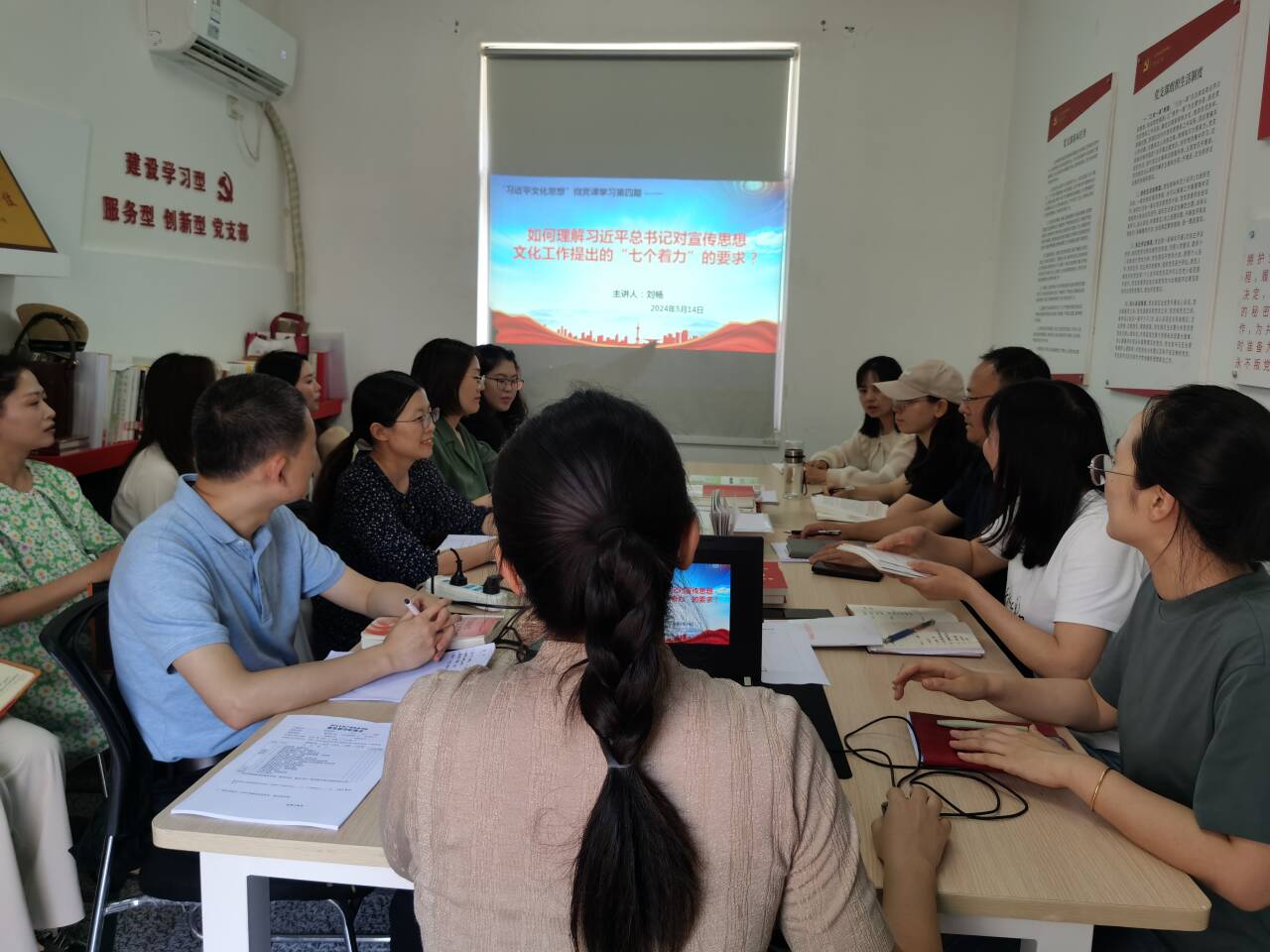 本次主题微党课由刘畅主讲。她以《如何理解习近平总书记对宣传思想文化工作提出的“七个着力”的要求?》为主题,从习近平总书记关于建设好文化强国提出“七个着力”重要要求的背景、核心观点、彰显特质进行了深入分析和诠释。“七个着力”既是认识论又是方法论,既有宏观层面的整体指导,又有具体层面的实践路径,具有很强的政治性、思想性、指导性,为今后一个时期的宣传思想文化工作指明了前进方向、提供了科学指南。对此,我们要牢牢把握“七个着力”重大要求,深入学习贯彻习近平文化思想,更好担负起新的文化使命,不断开创新时代宣传思想文化工作新局面,为强国建设、民族复兴作出新的更大贡献。