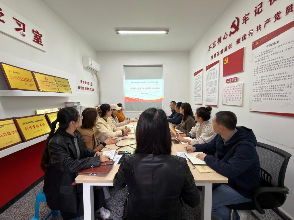 10月24日,马克思主义学院教工第一党支部在学院302会议室开展了“赓续抗战精神 砥砺复兴力量”系列微党课第三期学习。本期微党课题目为“在新时代继承和弘扬伟大抗战精神”,由孙世欣老师主讲,支部全体党员教师参加了本次学习。