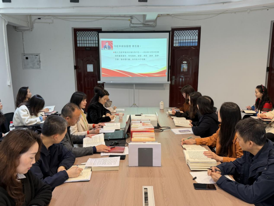 为深入学习贯彻习近平新时代中国特色社会主义思想,推动党的创新理论入脑入心、见行见效,11月7日,马克思主义学院在一楼大厅会议室开展主题党日活动,集中学习研讨《习近平谈治国理政》第五卷。学院领导班子成员、全体党员教师参加。