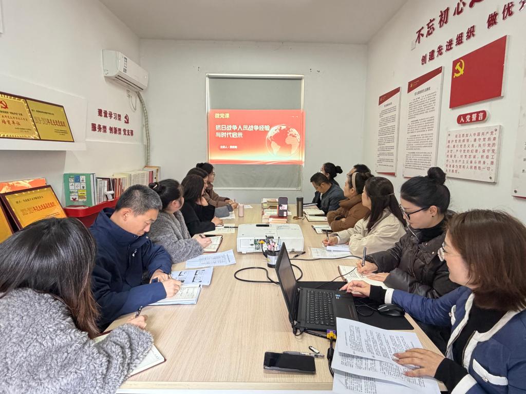 12月5日,马克思主义学院教工第一党支部在学院302会议室开展了“赓续抗战精神 砥砺复兴力量”系列微党课第五期学习。本期微党课主题为“抗日战争人民战争经验与时代启示”,由费青梅老师主讲,支部全体党员教师参加了本次学习。