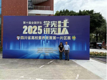 2025年9月29日下午,四川省第十届学生“学宪法 讲宪法”素养竞赛高校组第一片区赛在成都理工大学第九教学楼国际学术报告厅成功举行。四川文化产业职业学院文旅学院学生刘汶君在马克思主义学院指导老师何东的陪同下,与来自四川大学、西华大学等共8所高校的学生代表同台竞技,展现了文产院学子的良好风貌。