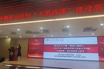 本次会议由重庆市职业教育学会、四川省职业技术教育学会指导,由重庆市职业教育学会党建工作委员会、成渝地区双城经济圈职业院校“大思政课”建设共同体主办,重庆电力高等专科学校承办。来自川渝地区职业院校的100余名专家学者参会。会议围绕学习贯彻党的二十届四中全会精神,深化职业院校“大思政课”建设改革的主题展开,分为工作总结、主旨报告、经验分享等环节。我校马克思主义学院教师、四川省高校思想政治教育马吉宏名师工作室主持人围绕我院党建引领“大思政课”建设的探索与思考作了《激活红色引擎 赋能立德树人》经验交流发言。