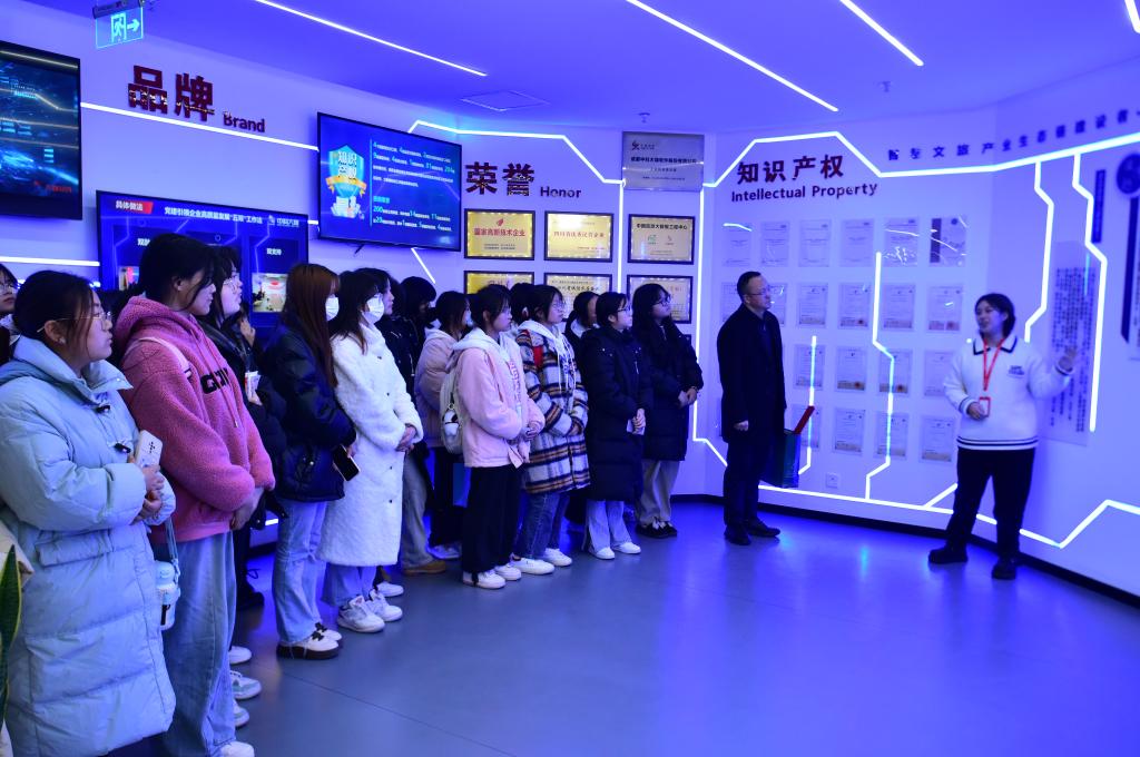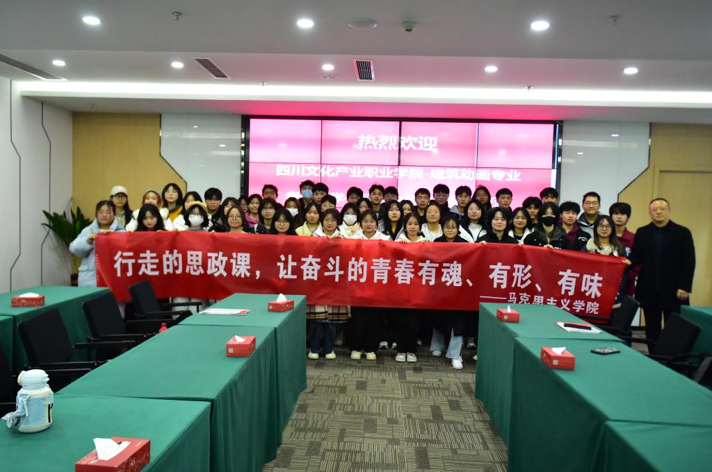 为不断增强“大思政课”的时效性、针对性和吸引力,1月10日下午,四川文化产业职业学院2023级建筑与动画专业48名学生,在马克思主义学院张宗胜老师的带领下走进成都中科大旗软件股份有限公司(后简称中科大旗)开展形势与政策课现场教学活动。