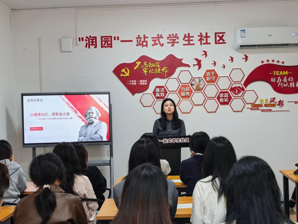 党员教师李婕从理想、信念、职业、专业等方面对卡尔˙马克思的《青年在选择职业时的考虑》进行了读书分享。她寄语同学们,职业选择不是“谋生的无奈”,而是 “理想的落地”,要以理想为指引,在专业职业中实现个人价值与社会价值,让青春绽放光彩。